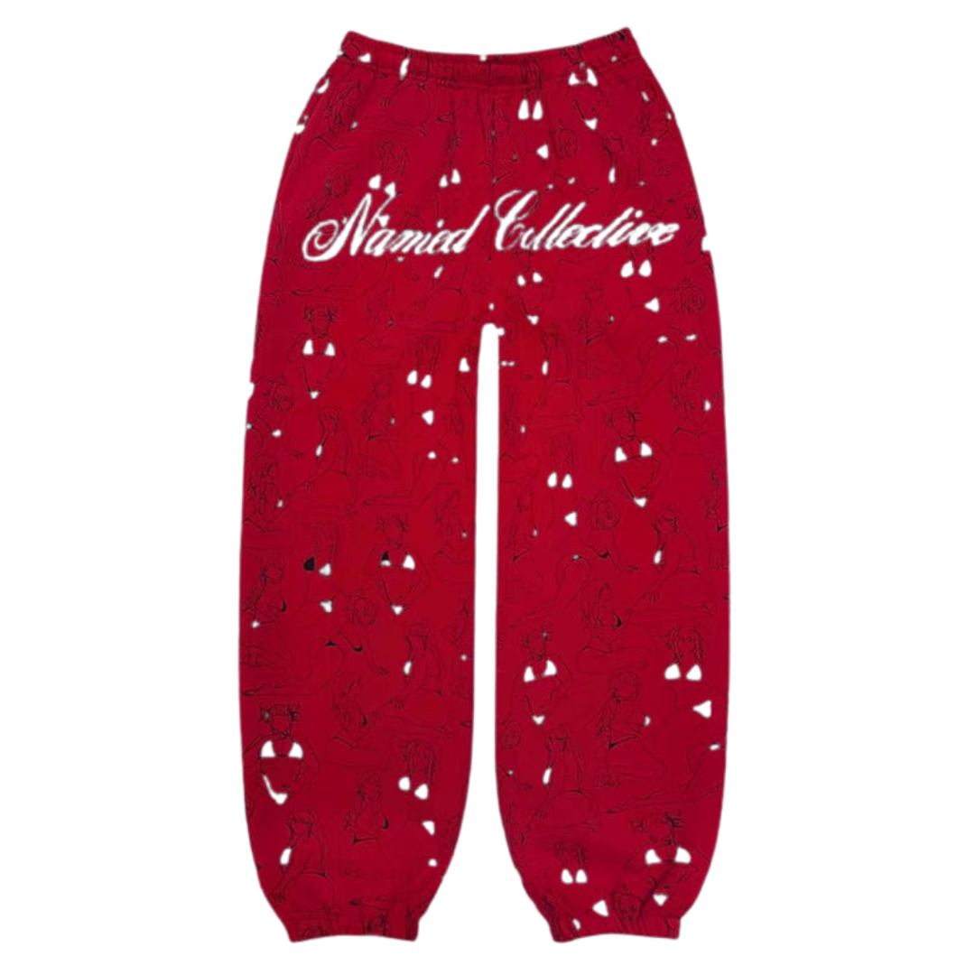 Graphic Anime Sketch Hoodie & Sweatpants Set Red